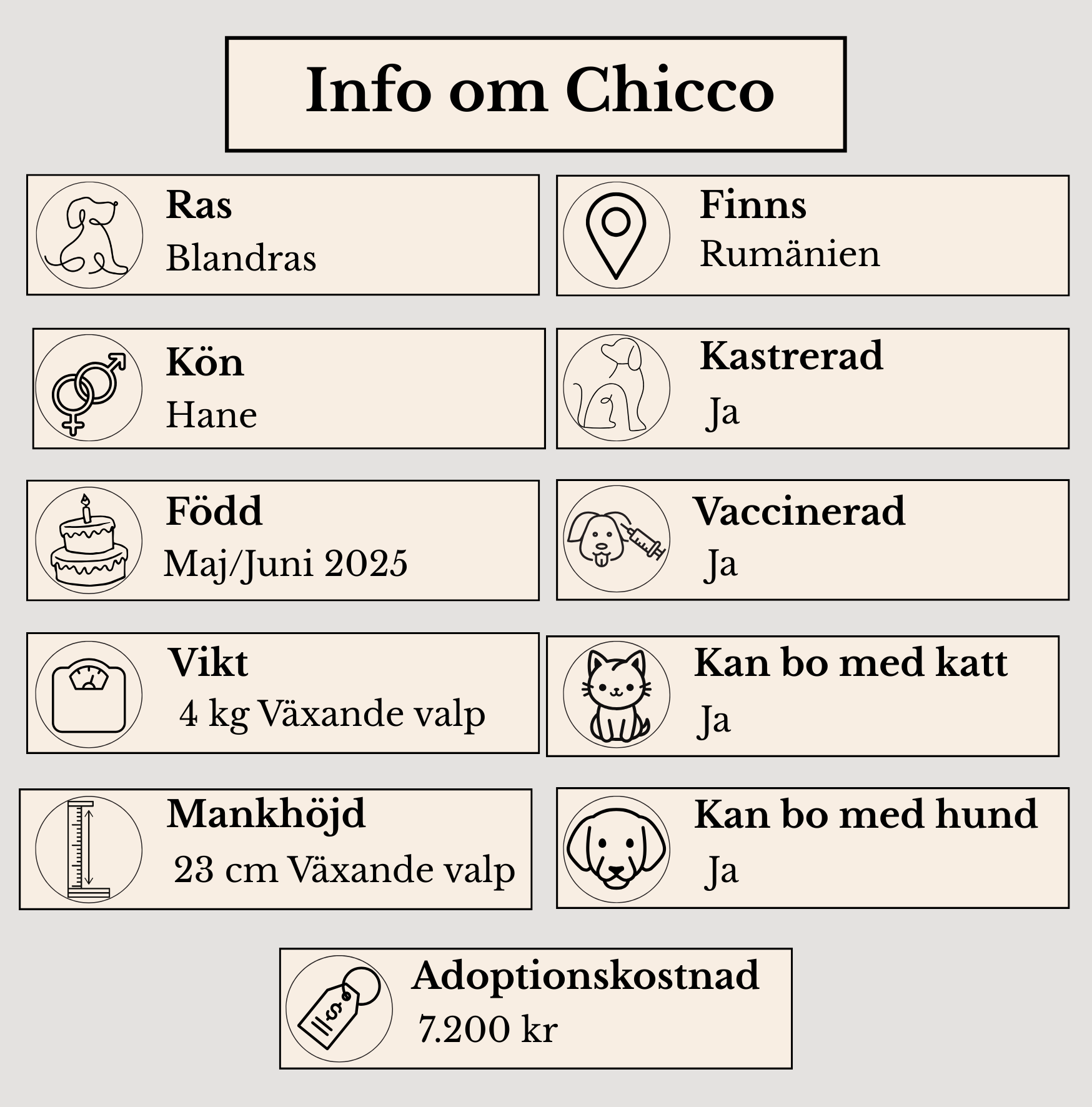 Chicco är en lekfull växande valp. Född under maj/ juni år 2025.